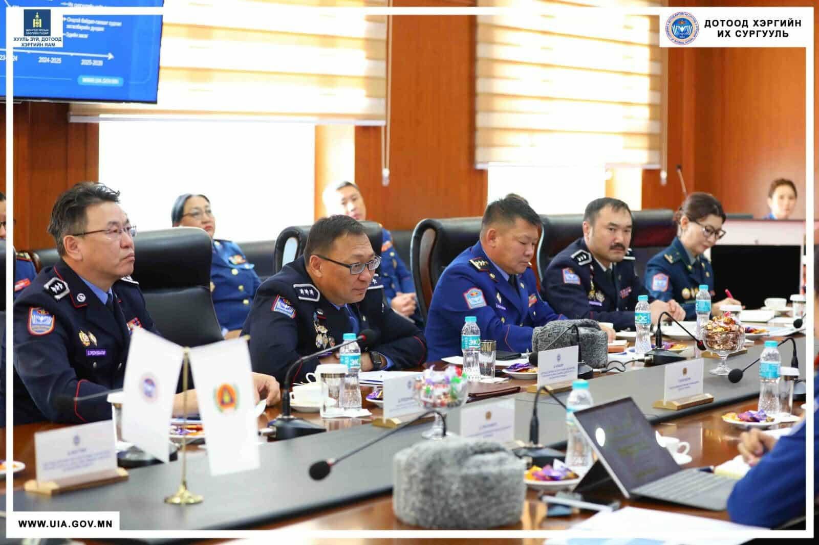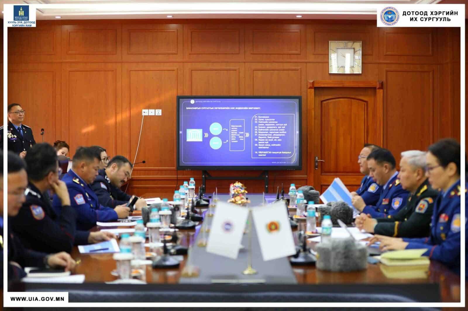 - Хэлэлцүүлгийг Дотоод хэргийн их сургуулийн дэд бөгөөд Сургалтын газрын захирал, доктор (Ph.D), цагдаагийн хурандаа Ц.Азбаяр нээж, “Бакалаврын хөтөлбөрийн бүтэц, бүрдэл, сүүлийн жилүүдэд орсон өөрчлөлт”, Сургалтын газрын Үнэлгээ, арга зүйн төвийн эрхлэгч, цагдаагийн хошууч Д.Баттөр “Элсэлтийн үйл ажиллагааны чиглэл”, Онцгой байдлын сургуулийн захирал, доктор (Ph.D), дэд профессор, хурандаа Н.Батсайхан “Онцгой байдлын сургуулийн танилцуулга, хэрэгжүүлж буй сургалтын хөтөлбөрийн хэрэгжилт, түүний үр дүн” сэдвүүдээр танилцуулж, хичээлийн хөтөлбөр, төлөвлөгөөнд тодотгол хийх, харилцан санал солилцож, зарим өөрчлөлт, сайжруулалтыг хийхээр шийдвэрлэсэн юм.