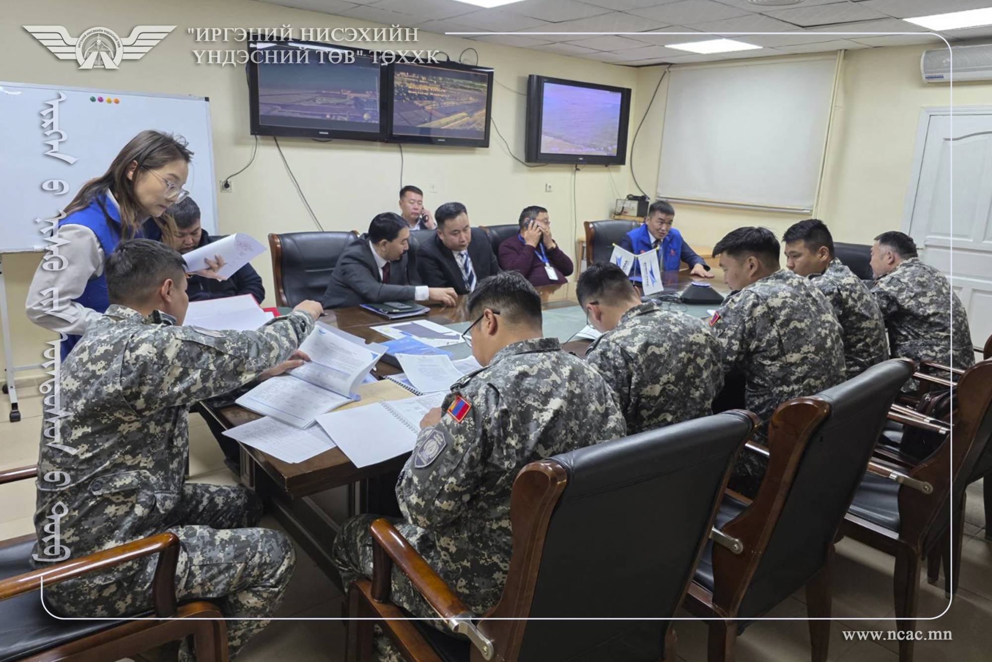 “Иргэний нисэхийн үндэсний төв” ТӨХХК-ийн мэргэжлийн ангийн бүрэлдэхүүн 2025.10.21-ний өдөр Зам тээврийн яамны гадаа талбайд бэлэн байдлын цуглар дохиогоор цуглаж, аранз, хөдөлмөр хамгааллын хувцас хэрэглэл болон тээврийн хэрэгслийн бэлэн байдлыг танилцуулах арга хэмжээнд оролцсон байна. Энэ үеэр ОБЕГ-аас гамшгийн нөхцөл байдлын дасгал сургуулилтаар өгөгдсөн цагийн байдалд тохируулан авах арга хэмжээг төлөвлөж, “Иргэний нисэхийн үндэсний төв” ТӨХХК-ийн салбар нэгжүүд шуурхай хамтран ажиллаж, илтгэх хуудсаар ЗТЯ-нд илтгэсэн юм. Энэхүү үзлэгт хамрагдсан Зам тээврийн яам болон түүний харьяа 12 байгууллагын 240 гаруй ажилтан, албан хаагчдад гамшгийн үед шийдвэр гаргах чадавхийг дээшлүүлэх, бие бүрэлдэхүүний мэдлэг ур чадвар, бэлэн байдлыг нэмэгдүүлэх чиглэлээр ОБЕГ-аас мэргэжил аргазүйн зөвлөгөө өгч ажиллажээ.